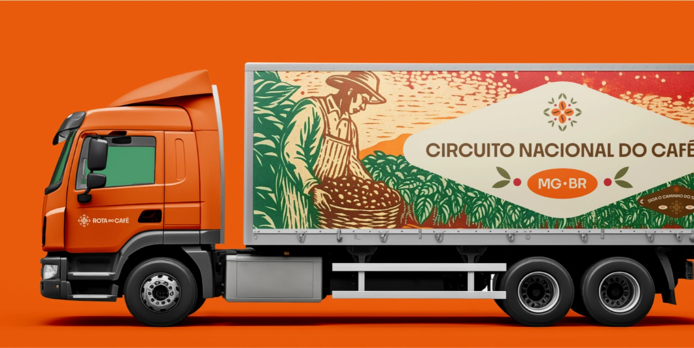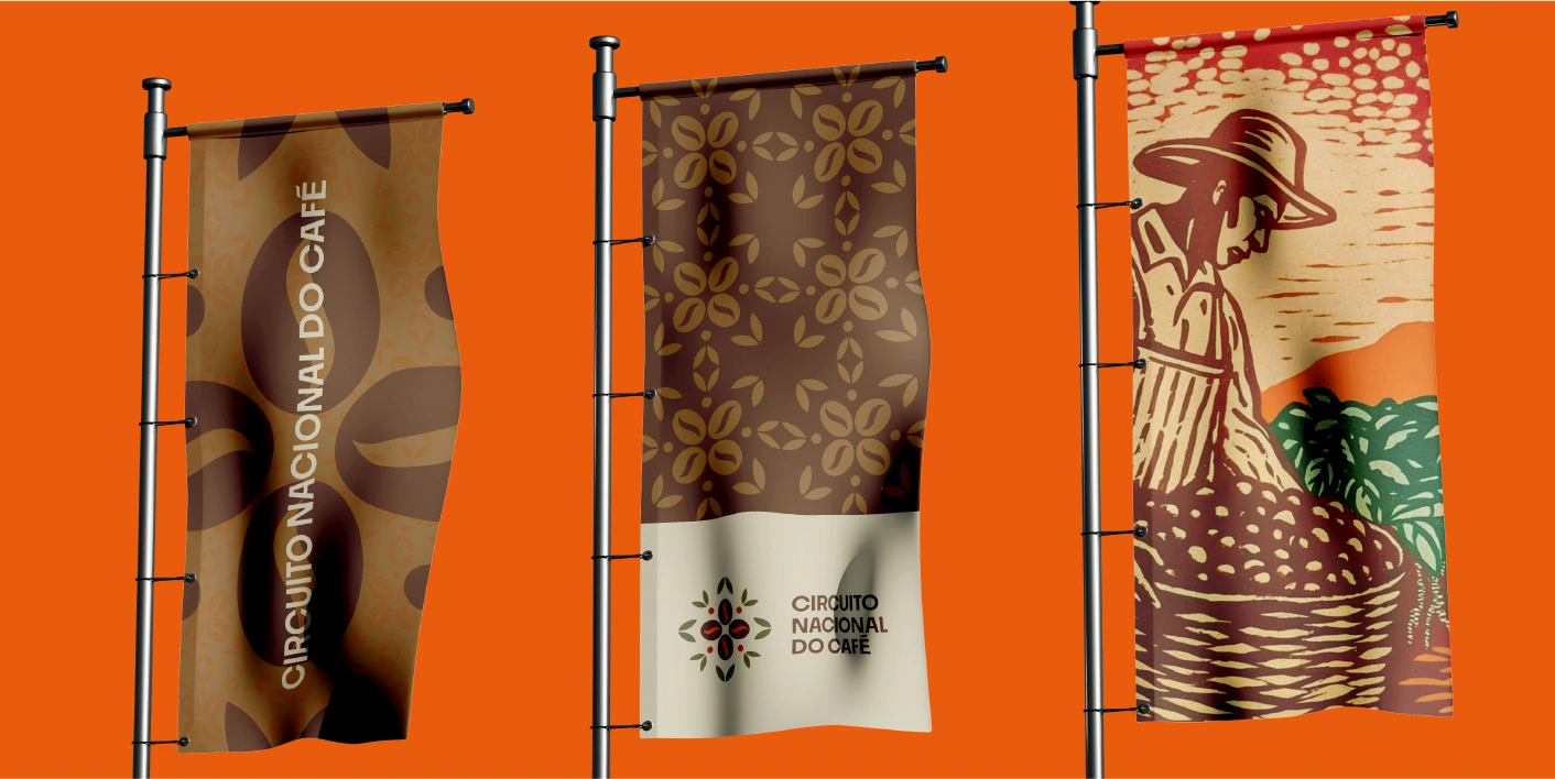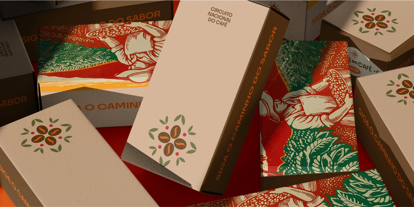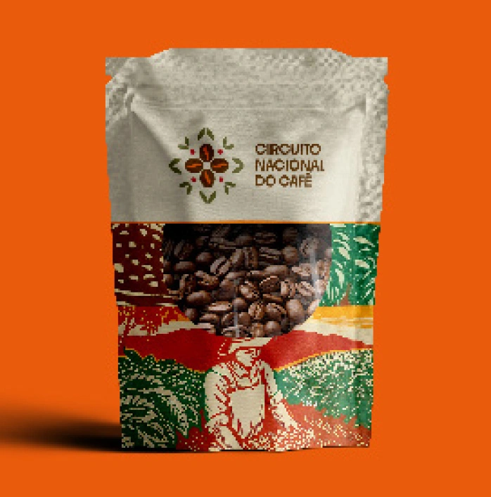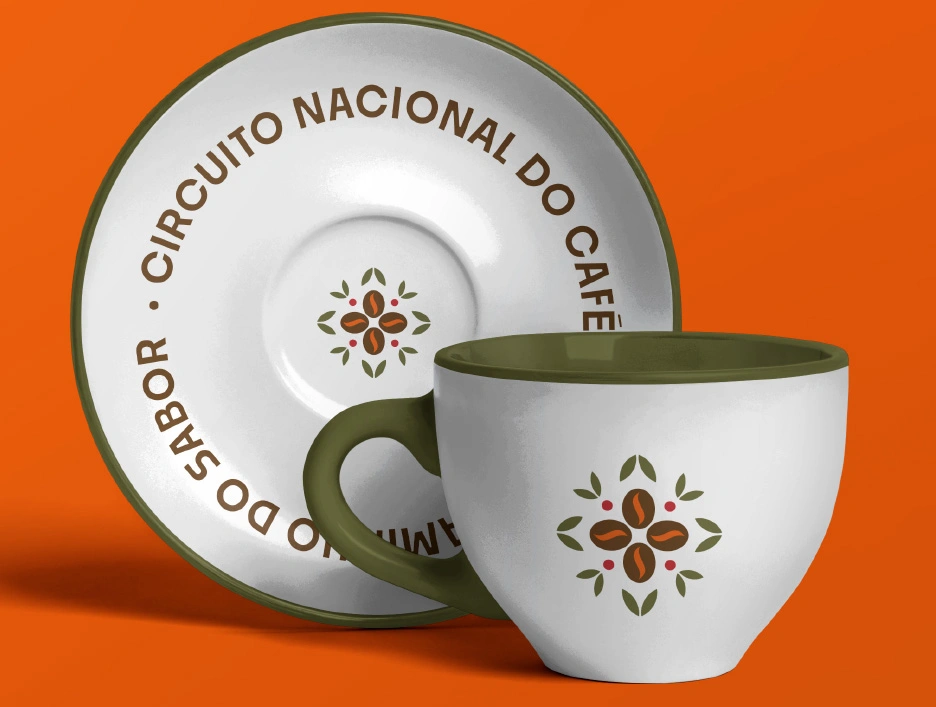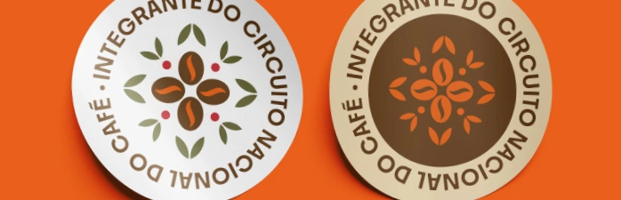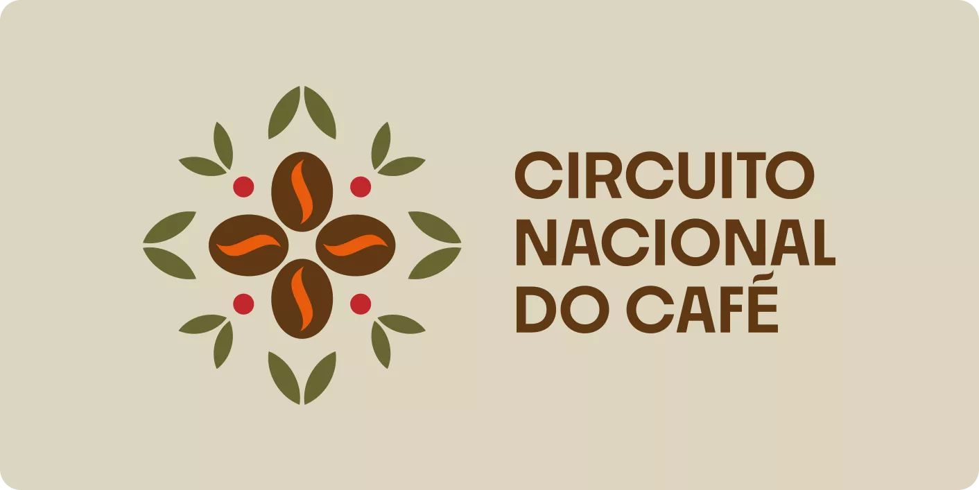 Como uma bússola, o Circuito Nacional do Café guia o olhar entre tradição e futuro, unindo pessoas e territórios pelo sabor. No centro, o grão pulsa como o coração da Rota, abraçado por folhas que remetem ao cultivo e à natureza. Pontos sutis celebram as sementes e a renovação, lembrando que o café é uma cultura viva que se reinventa a cada colheita.