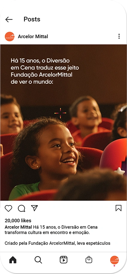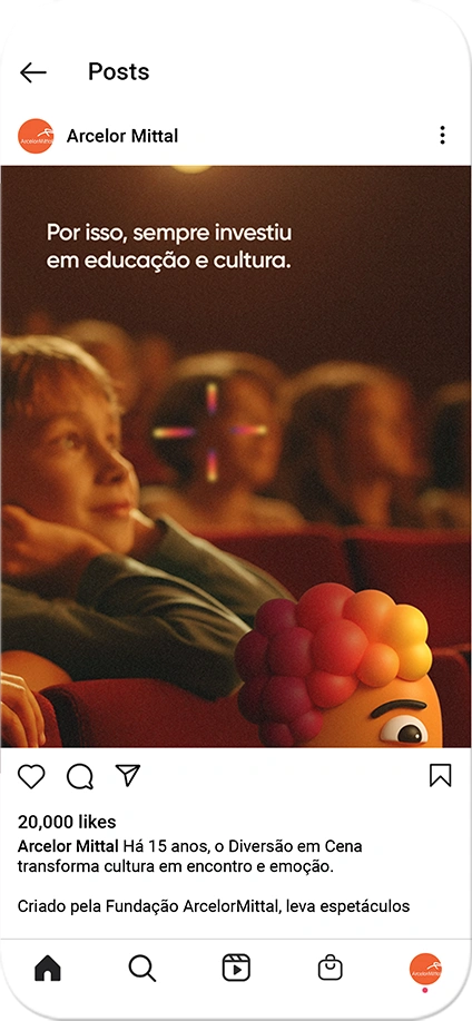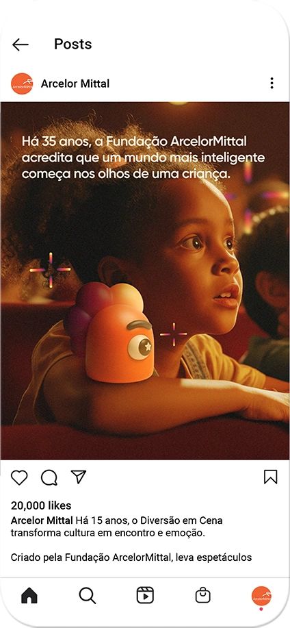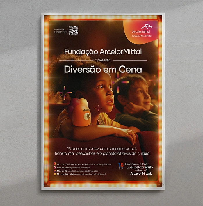 Para marcar essa história, criamos uma campanha lúdica e colorida, que fala diretamente com crianças, famílias e comunidades. E o melhor: reforça o propósito social da Fundação de democratizar a cultura e incentivar futuros através da arte.